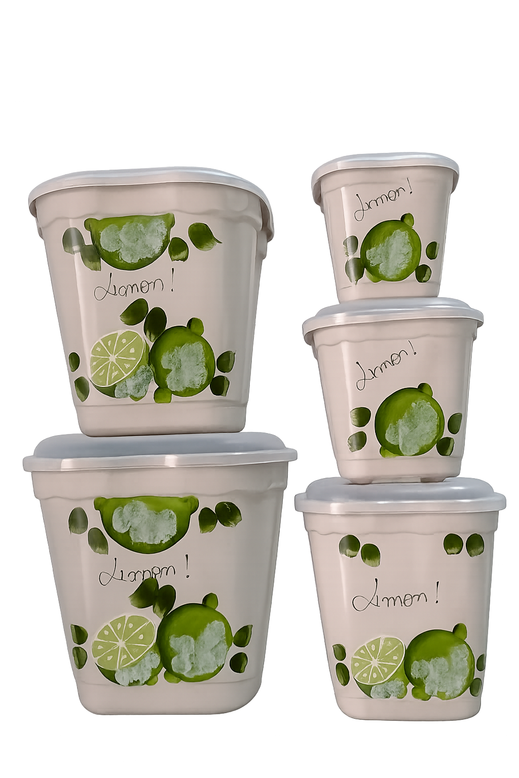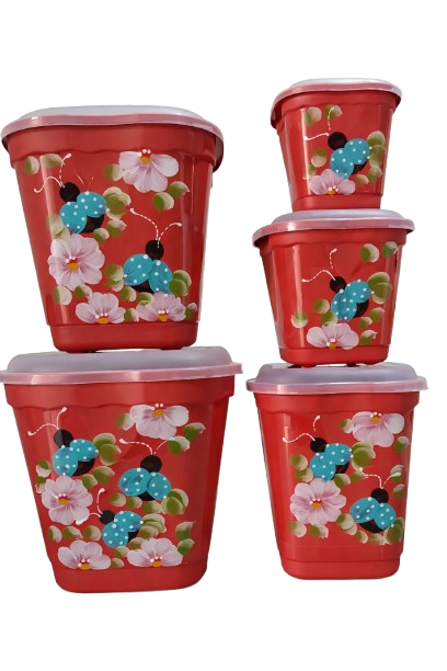 Kit 10 pçs pintado - 1 bacia 7,5lts + 9 potes